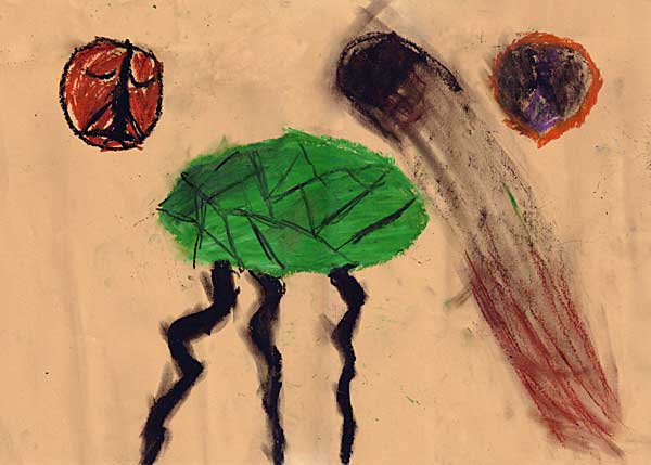 Within his Baobab tree, he left his cup in the sink and stepped to his armory. With careful consideration, he selected a two handed sword perfectly balanced for his size. Next a lance of ginormous proportion made from the ivory of a massive elephant tusk. And finally, his shield with family crest, radio waves squiggling across a sun and moon fashioned by his own hands out of dragon scales. This was his prize. Everything else in this world popped into being with only a thought. This shield he had made. It was real and warmed to his touch.